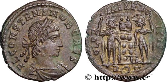 Country: CONSTANS Year: 335 State/Grade: AU/AU Nominal: Centenionalis ou nummus Weight (g): 2,20 Material: copper Catalog number: RIC.353 C.46 C.46 LRBC.561