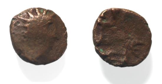 Arabia Felix. Hadhramawt. First century BC-first century AD. Cast AE 10mm, 1.53g. Shaqar mint.