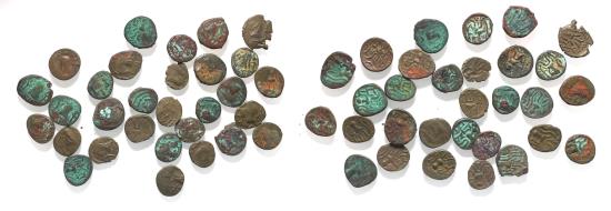 LOT OF 31 AS FOUND: Arabia Felix. Himyarite Kingdom. 100 - 300 A.D. Rare copper Bucranium coins.