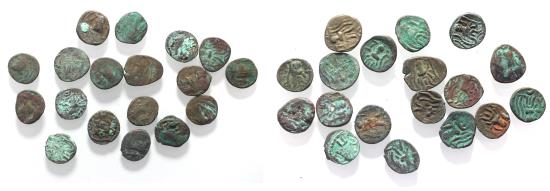 LOT OF 18 AS FOUND: Arabia Felix. Himyarite Kingdom. 100 - 300 A.D. Rare copper Bucranium coins.