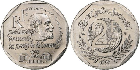 | | France, 2 Francs, René Cassin, 1998, MDP, BU, Nickel, , Gadoury:551 | | | FEATURES |
