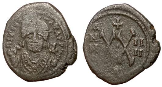Maurice Tiberius, 582 - 602 AD, Half Follis of Theoupolis