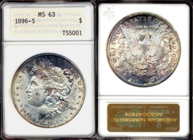 MULTI COLORS BOTH SIDES (purple & pink) This is a 1st generation ANA Slab when the ANA itself was grading coins. They were very conservative in their grading when they did this between 1989-1990 GREAT LOOKING coin with a GOOD STRIKE