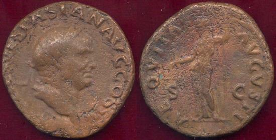 AE 26mm, 10gm AS Vespasian laureate bust facing right Aequitas standing left holding scales & measuring rod
