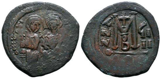 Justin II with Sophia, 565 - 578 AD, Follis of Constantinople, 31mm