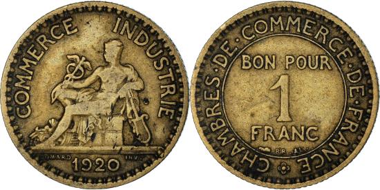 | | Coin, France, Chambre de commerce, Franc, 1920, Paris, | | | Chambre de commerce, Value, Mercury seated left, Without mint mark. Chamber of Commerce., CHAMBRES <Bullet> DE <Bullet> COMMERCE <Bullet> DE <Bullet> FRANCE | | FEATURES |
