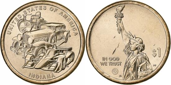 | | United States, Dollar, American Innovation - Indiana, 2023, Philadelphia | | | The coin is made of manganese brass clad copper. | | FEATURES |