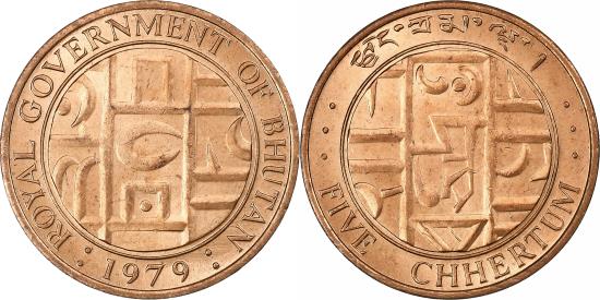 | | Bhutan, Jigme Singye Wangchuck, 5 Chetrums, 1979, Llantrisant, Bronze, | | | FEATURES |