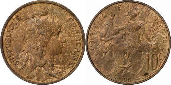 | | France, 10 Centimes, Dupuis, 1900, Paris, Bronze, , Gadoury:277, KM:843 | | | Dupuis, Liberty head right, Republic protecting her child, Without mint mark. | | FEATURES |