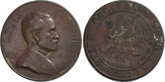 | France, Token, Louis Pasteur, États Fédérés d'Europe, 1928, Bronze |