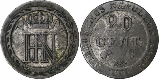 | German States, WESTPHALIA, Hyeronimus Napoleon, 20 Cent, 1808, Cassel, Billon |