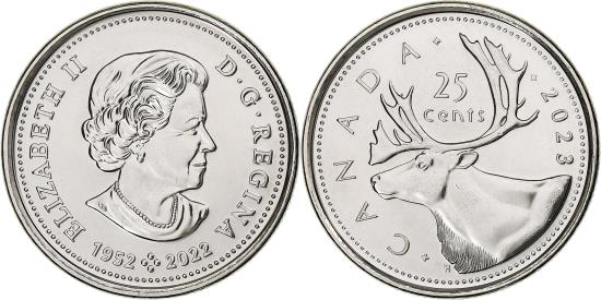 | Canada, 25 Cents, Caribou, 2023, Royal Canadian Mint, Nickel plated steel |