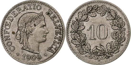 | | Switzerland, 10 Rappen, Libertas, 1909, Bern, Copper-nickel, , KM:27 | | | FEATURES |
