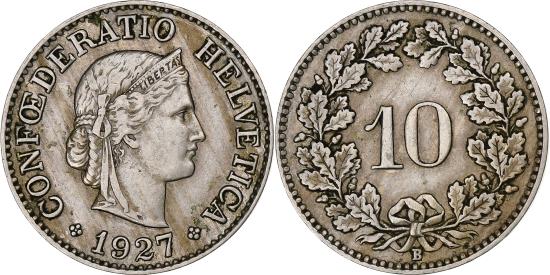 | | Switzerland, 10 Rappen, Libertas, 1927, Bern, Copper-nickel, , KM:27 | | | FEATURES |