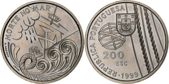 | | Portugal, 200 Escudos, 1999, Lisbon, Copper-nickel, , KM:716 | | | Shield, globe and ropes, Stylized sinking ship | | FEATURES |