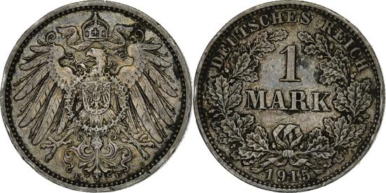 | | GERMANY - EMPIRE, Wilhelm II, Mark, 1915, Muldenhütten, Silver, | | | Denomination within wreath, Crowned imperial eagle with shield on breast, Struck from 1890-1916. | | FEATURES |
