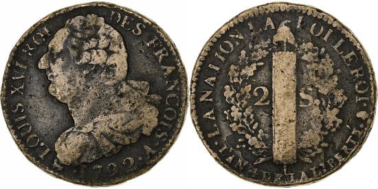 | | France, Louis XVI, 2 sols François, 1792 / AN 4, Paris, Métal de cloche | | | FEATURES |