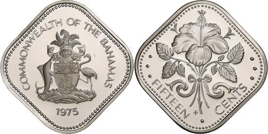 | | Bahamas, Elizabeth II, 15 Cents, 1975, Franklin Mint, Proof, Copper-nickel | | | FEATURES |