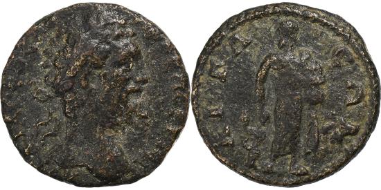 | | Cilicia, Septimius Severus, Æ Unit, 193-211, Aegeae, Bronze, | | | Laureate head of Septimius Severus, right., Asclepios standing facing, resting on serpent-staff., A unique example, this type had never been seen before in sales. Very similar to Roma Numismatics, E-Sale 26, 2016, lot 419 for the portrait. The depiction of Asclepios is also very similar to that of Hercules, with the serpent staff replacing the club and the drapery replacing the lion skin., ΑΙΓΑΕΩΝ | | FEATURES |