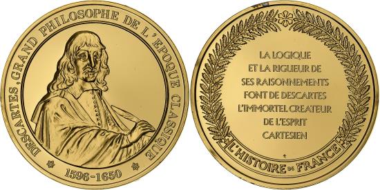 | France, Medal, Descartes, Gold plated silver, L'Histoire de France, |