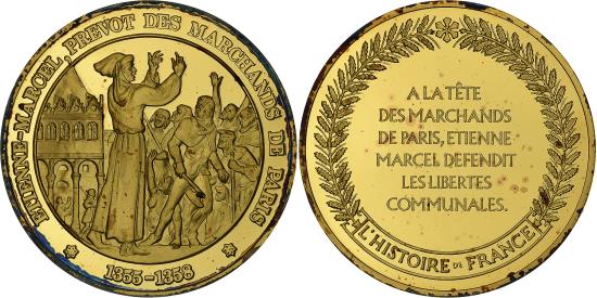 | France, Medal, Etienne Marcel, Gold plated silver, L'Histoire de France, |