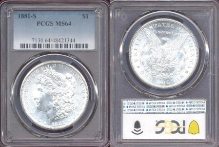 1881-S MORGAN DOLLAR PCGS MS64 .... WHITE
