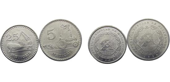 Mozambique People's Republic 1982/1986 2.5 Meticais & 5 Meticais 2 Lots