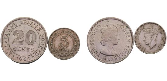 Malaya & Malaya and British Borneo British colony George VI & Elizabeth II 1950/1954 5 Cents & 10 Cents 2 Lots