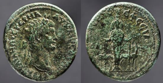 Ionia. Ephesus. Trajan (AD 98-117). Ae 32 mm. 22.4 gm. Obv: ΑΥ ΚΑΙ ΘЄΟΥ ΥΩ ΝЄΡΒΑ ΤΡΑΙΑΝΩ СЄ ΓЄΡΜΑ. Laureate head right. Rev: ΑΡΤЄΜΙС ЄΦЄСΙΑ. Facing statue of Artemis Ephesia, with supports; stag to left and right. RPC III 2047.1 = CNG 39, lot 934.