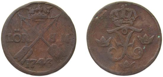 Sweden Kingdom 1743 1 Öre Silvermynt - Frederick I Copper Stockholm Mint (99900) 13.8g VF KM 416