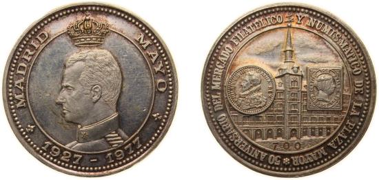 Spain Kingdom 1977 Medal - 50º Aniversario del Mercado Filatélico y Numismático de la Plaza Mayor Silver 24.5g AUNC