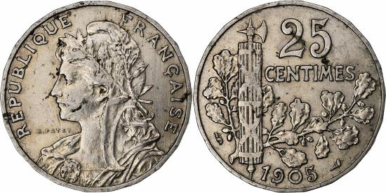 | | France, 25 Centimes, Patey, 1905, Paris, Nickel, | | | FEATURES |