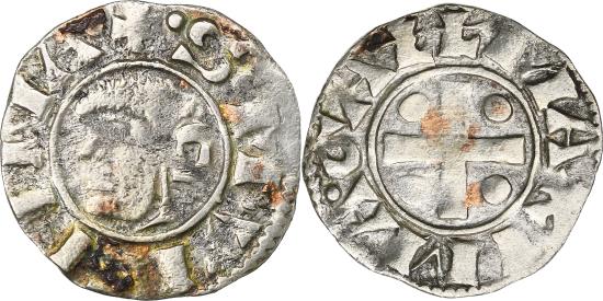 | | Archbishopric of Vienne, Denier, ca. 1200-1250, Vienne, Billon, | | | Bare, bearded head from the profile of Saint Maurice, left., Cross cantoned by four pellets., +. S. M. VIENNA., MAXIMA. GALL | | FEATURES |