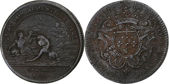 | | France, Token, Louis XV, Marine, Galères Royales, 1728, Copper, | | | Laureated head right, Fountain | | FEATURES |