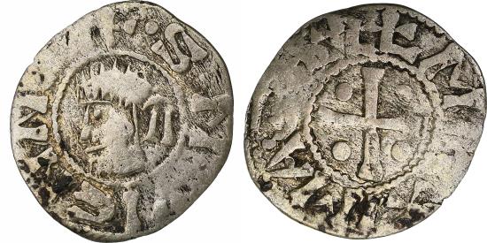 | | Archbishopric of Vienne, Denier, ca. 1200-1250, Vienne, Billon, | | | Bare, bearded head from the profile of Saint Maurice, left., Cross cantoned by four pellets., +. S. M. VIENNA., MAXIMA. GALL | | FEATURES |