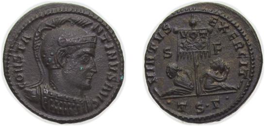 Rome Roman Empire 320 - 320 TSΓ AE Follis - Constantinus I (VIRTVS EXERCIT) Copper Thessalonica Mint 2.7g AU RIC VII 75