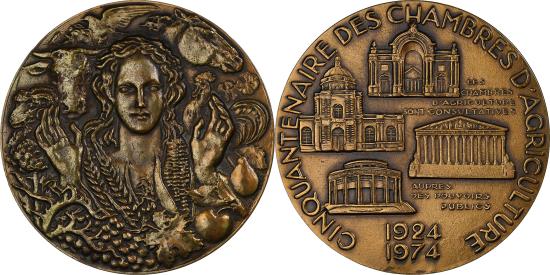 | France, Medal, Cinquantenaire des Chambres d'Agriculture, 1974, Bronze |