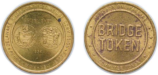 United States 1970 1 Passage Bridge Token - 1934 Delaware River Joint Toll Bridge Commission Brass 3.1g UNC