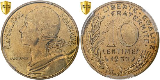 | France, 10 Centimes, Marianne, 1980, Paris, Aluminum-Bronze, PCGS, |