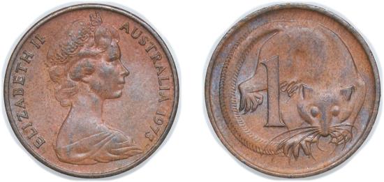 Australia Commonwealth 1973 1 Cent - Elizabeth II (2nd Portrait) Bronze (97% Copper, 2.5% Zinc, 0.5% Tin) Royal Australian Mint (140710000) 2.64g UNC KM 62 Schön 49
