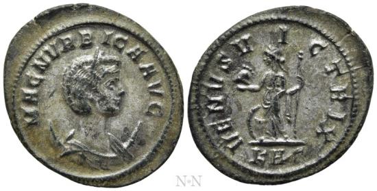 Obv: MAGN VRBICA AVG.Draped bust right, wearing stephane and set upon crescent.Rev: VENVS VICTRIX / KAς.Venus standing left, holding helmet and sceptre; shield to left.