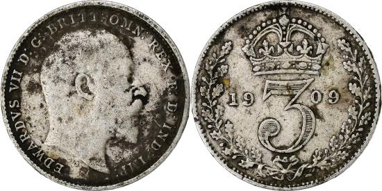 | | Great Britain, Edward VII, 6 Pence, 1909, Silver, , KM:799 | | | Head right, Crowned denomination within oak wreath, date below | | FEATURES |