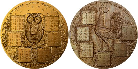 | | France, Medal, Calendrier, La Chouette et le Coq, 1977, Bronze, Couture | | | FEATURES |