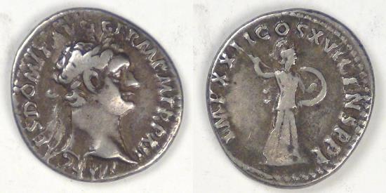 ROMAN EMPIRE, Domitian as Augustus (81-96 AD), 95-96 AD, AR Denarius, about Very Fine