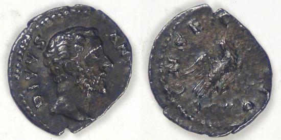 Obv: Bare head of Antoninus Pius right with the legend DIVVS ANTONINVS around