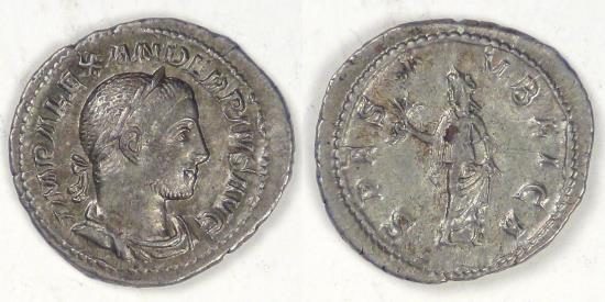 Obv: Laureate, draped and cuirassed bust of Severus Alexander right with the legend IMP ALEXANDER PIVS AVG around
