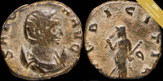 Obverse: SALONINA AVG, bust on the right within a crescent Reverse: PUDICITIA, Pudicitia standing facing each other, head left, covering face with veil, holding transverse scepter, Q in right field Ref: 2602Shipments destined outside of Spain (both from the European Union and third countries) are subject to the processing of the corresponding export permits. Depending on the duration of these administrative procedures, some shipments could be affected by small delays, normally not exceeding 30 days. |