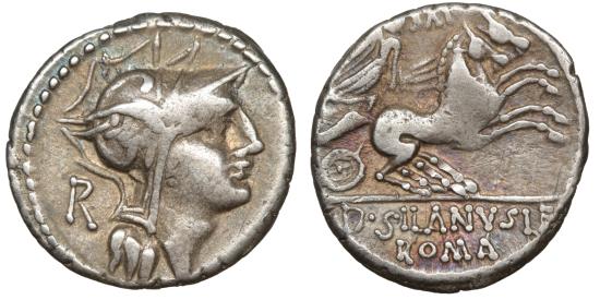 D. Iunius Silanus L.f. AR Denarius Rome 91 BC