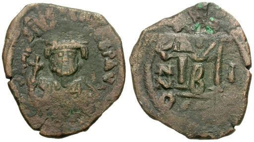 Title: *Sear 494* Byzantine Empire. Maurice Tiberius (AD 582-602) Æ Follis