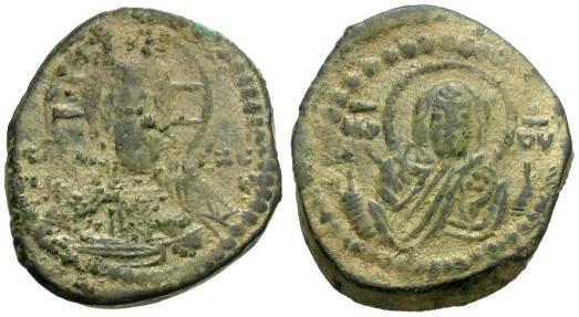 Title: *Sear 1867* Byzantine Empire. Anonymous. Class G Æ Follis / Christ and Virgin